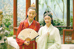 有一次拍到賈寶玉吃丫環(huán)嘴上的胭脂,“小寶玉”突然發(fā)脾氣,死都不肯合作。導(dǎo)演李少紅問他為什么,他哭喪著臉說:“這丫環(huán)長得太丑了,我可不想把自己的初吻給她!”說著,他就跑出去,號稱“要趕緊先把自己的初吻獻出去”。當(dāng)然他只是說說而已,當(dāng)時大家慫恿他去親“林妹妹”或“寶姐姐”,他聳聳肩:“導(dǎo)演知道了,還不打斷我的腿!”