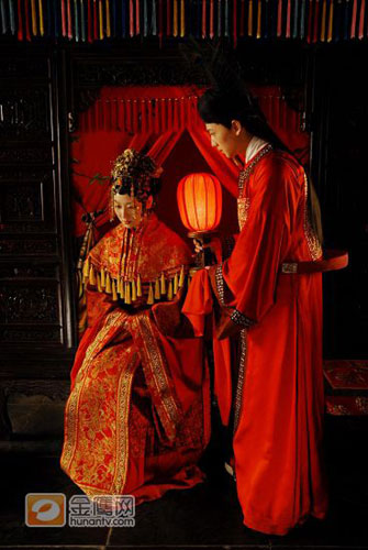 2009年元旦,新版電視劇《紅樓夢(mèng)》攝制組照常緊鑼密鼓地忙碌著,而這一天拍攝的戲份正是寶玉大婚。在北京廠的攝影棚內(nèi),寶玉房張燈結(jié)彩,一派喜慶氣氛。高懸大紅彩帳的堂前掛著三幅婚聯(lián):“彩筆喜題紅葉句 華堂欣詠采萍章”、“綠窗待月春調(diào)瑟 紅袖添香夜讀書”、“吐鳳雄才成博議 畫眉彩筆點(diǎn)新詩”。而當(dāng)天的婚俗禮儀據(jù)說也是講究多多。寶玉寶釵拜堂異與旁人的三拜,而是四拜:一拜天地諸神,二拜賈母,三拜賈政王夫人,四為夫妻對(duì)拜……當(dāng)天參演的主要角色有王夫人(歸亞蕾)、薛姨媽(龔麗君)、尤氏(賈妮)、王熙鳳(姚笛)、賈政(許還山)、賈赦(李健)、賈珍(姜彤)、成年寶玉(楊洋)、成年寶釵(白冰)、成年惜春(徐行)、鴛鴦(蔡飛雨)、襲人(李艷)、鶯兒(方安娜)、平兒(程媛媛)、彩云(呂途)、雪雁(宣璐)等近30位演員,個(gè)個(gè)盛裝華服,喜氣洋洋。戲里戲外的喜慶氣氛聯(lián)成一片。李少紅導(dǎo)演笑稱“這個(gè)紅火的場面也算是新版《紅樓夢(mèng)》跨入09年的一個(gè)開門紅吧!