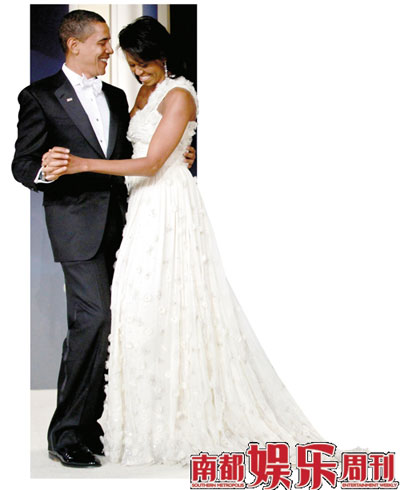巴拉克·奧巴馬競選的時候,紐約時尚圈競相投靠奧巴馬的名人風頭,他和他的夫人早在去年就雙雙被評為《名利場》雜志年度最佳著裝人士。米歇爾1月21 日晚間出席華盛頓會議中心的舞會時的禮服,是一襲白色雪紡曳地長裙,操刀這襲晚禮服的是華裔設計師吳季剛(Jason Wu),年僅26歲,臺北出生,并不出名的他從米歇爾身上展現(xiàn)了自己的才華,同時讓米歇爾贏得了全世界的喝彩。她領跳第一支舞前,奧巴馬還向嘉賓打趣說:“第一件事,我太太漂亮嗎?”迅速惹來全場歡呼。兩人的時尚風頭,一時無兩。