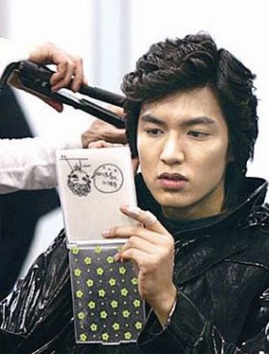 近日,韓國(guó)熱播電視劇《花樣男子》中具俊表的扮演者李民浩在拍攝現(xiàn)場(chǎng)的樣子被公開。照片同時(shí)公布了具俊表標(biāo)準(zhǔn)“海螺”頭成型的過程,原來,李民浩的頭發(fā)并沒有這樣的彎曲,每次都要靠卷發(fā)棒卷上好久才行。記者 徐丹嵐