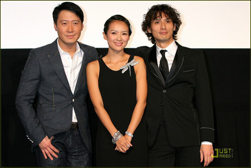當(dāng)天的章子怡身穿黑色禮服,胸前的蜻蜓配飾和頭發(fā)的配飾交相輝映,優(yōu)雅高貴,銀色裙邊閃亮耀眼,配上招牌甜美笑容,看來對此次《梅蘭芳》日本之行很有信心。