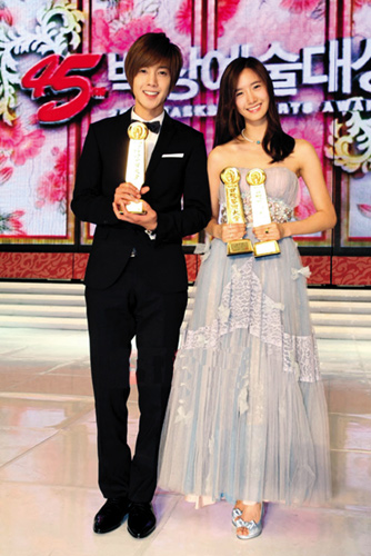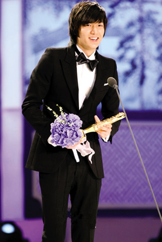 頒獎(jiǎng)典禮一開始,李民浩就毫無懸念地獲得電視類男子新人獎(jiǎng),F(xiàn)4的其他三名成員都起身祝賀他。而金賢重所在的組合SS501在頒獎(jiǎng)禮上獻(xiàn)唱《花樣男子》主題曲《因?yàn)槲姨怠芬约靶聦]嬛鞔蚋琛禪 R Man》時(shí),現(xiàn)場(chǎng)掀起了高潮。此外,最近憑借新歌《Gee》在歌謠界獲得巨大成功的“少女時(shí)代”組合也是當(dāng)天的人氣王,當(dāng)成員之一的允兒與金賢重一起獲得電視類人氣獎(jiǎng)時(shí),現(xiàn)場(chǎng)粉絲情緒越發(fā)高漲。金賢重領(lǐng)獎(jiǎng)時(shí)還大吼:“感謝你們!”他表示,從歌手跨界做演員,雖然很累但是遇到了好作品,覺得十分幸運(yùn)。