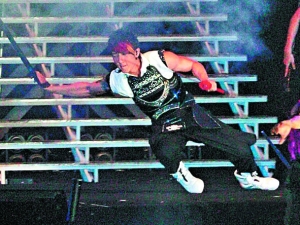 飛輪海首次踏上香港紅館舉行演唱會,可惜2月27日的首場演出就錯漏百出。汪東城(大東)撞毀圍欄險些跌下臺;炎亞綸自彈自唱跟不上節(jié)奏;吳尊用單手吊鋼絲飛入場時跌傷腳,表演耍劍時又弄斷了劍,以致辰亦儒取笑他說:“每次彩排都覺得很危險,他的功力一天比一天強!辈贿^,歌迷對此照單全收,從開場到結(jié)尾都接近失控狀態(tài),不停瘋狂叫囂支持偶像。演唱會結(jié)束時,歌迷才發(fā)現(xiàn)吳尊爸爸也在現(xiàn)場,立刻蜂擁而上爭相合照。據(jù)悉,吳尊的傷勢不輕,演唱會結(jié)束后他在工作人員陪同下到醫(yī)院照X光檢查,發(fā)現(xiàn)左腳跟骨裂,估計要兩個月才能愈合,故他兩星期內(nèi)不可跳舞及跑動。