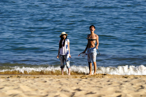 《流星雨》最新劇照的內(nèi)容包括了眾人集體野炊、慕容云海為楚雨蕁潛海捕魚、端木磊在沙灘上與楚雨蕁對白,以及眾人一起打沙灘排球等多個場面,但效果卻被網(wǎng)友歸結(jié)為一個字———“土”。相比之下,韓劇《花樣男子》中李民浩赤裸上身在海灘飛奔的情景,卻讓網(wǎng)友普遍認為,他蓬松的卷發(fā)在湛藍的海水前飛舞的樣子極為性感。據(jù)《花樣男子》劇組工作人員透露,該場景中包括了男女主角的首場感情戲,是劇情中的關(guān)鍵部分,所以劇組專門前往海外進行拍攝。除此之外,澳門的威尼斯人(度假村)酒店也是該劇外景地之一。