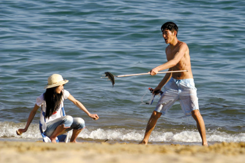 號稱“內(nèi)地版《流星花園》”的《流星雨》劇組昨天曝光了一組沙灘照,照片里是眾主演在廈門某酒店拍攝的一場海邊度假野炊的群戲。照片曝光后,張翰(飾慕容云海)捕魚上岸的“出浴”濕身照飽受網(wǎng)友詬病。在這組所謂的“性感劇照”中,不僅男主角沒有宣傳中的“壯碩的胸肌和紋路鮮明的腹肌”,其愣頭愣腦的神情和夸張的肢體語言更被不少網(wǎng)友戲稱為“少年閏土”和“黑土進城”。相比之下,身邊的“草根”女主人公楚雨蕁倒更顯洋氣。