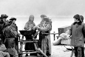 記者昨日在現(xiàn)場(chǎng)看到,每當(dāng)拍戲的間歇,演員們就三五成群地圍到行軍火盆旁邊烤火、聊天。還有的演員扭在一起摔跤,以運(yùn)動(dòng)來(lái)增加熱量。