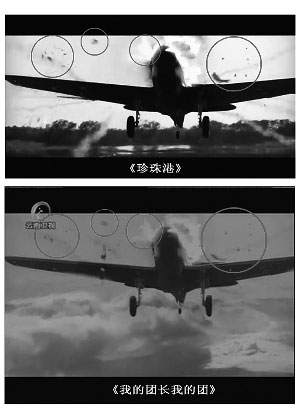 《團長》前兩集中描繪孟煩了、迷龍等川軍團成員乘坐運輸機前往緬甸時,遭遇日軍襲擊而墜機的情節(jié),首日播出之后,便有眼尖的觀眾發(fā)現(xiàn)空中飛行的鏡頭和墜機的鏡頭和《珍珠港》相似。昨日,有觀眾貼出了全部的比較圖,其中十余幀畫面和《珍珠港》如出一轍,甚至連駕駛艙的構(gòu)造和艙內(nèi)細節(jié)都是一模一樣。觀眾紛紛質(zhì)疑《團長》從電影中直接截取了相關(guān)鏡頭。