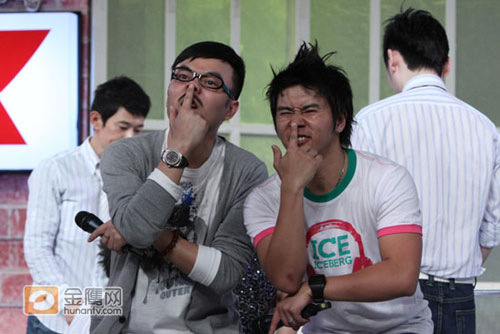 全國著名局部模特參加湖南衛(wèi)視著名脫口秀節(jié)目《天天向上》的錄制,在模特們換裝的時(shí)候,主持人汪涵、歐弟為模特當(dāng)起“更衣簾”,并不斷做出搞怪的表情,笑翻全場。于慧娜 攝