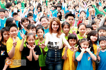 小朋友見到偶像到來,非常興奮,就連家長和老師也不分老小忙著拿起相機(jī)拍照,全校為之瘋狂,讓蔡依林在活動結(jié)束后,差點(diǎn)離不開校園。