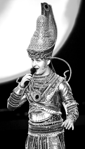 維塔斯火起來(lái)是在2000年,克里姆林宮一曲《歌劇2》,真是驚為天人。那時(shí)的他愛(ài)穿標(biāo)志性的窄身黑西裝,戴著一條紅圍巾,跨越5個(gè)八度的不可思議的海豚音,給人的感覺(jué)神秘而空靈。昨天的維塔斯卻以一身紅色的機(jī)器人服飾出場(chǎng),剛開(kāi)始的幾個(gè)高音完全聽(tīng)不出原有的清亮,眉眼也因?yàn)榘l(fā)胖而顯得模糊,依稀能看見(jiàn)個(gè)熟悉的輪廓,但魅惑的精魄已經(jīng)散去。從無(wú)字《詠嘆調(diào)》到《我的太陽(yáng)》再到《今夜無(wú)人入眠》,一首首經(jīng)典曲目在他口中變得千篇一律,而中文曲目《大海啊大海》《青藏高原》給人刻意討好的感覺(jué)。每次唱到高潮部分,維塔斯總會(huì)因?yàn)槭治枳愕付^(guò)演唱,一段段熟悉的旋律就此在他游離的眼神間劃過(guò),好像磁帶突然跳帶,讓人很不過(guò)癮。