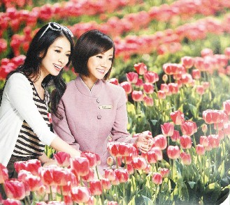 這份月、桌歷,也以蒔花美景為主題,搭配12個(gè)月份不同的花語(yǔ)。林志玲造型多變,展現(xiàn)俏皮、優(yōu)雅和柔美的不同風(fēng)情,與華航12位美麗的員工,穿梭花叢中,人花競(jìng)艷。