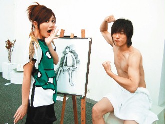 梁靜茹飾演美術(shù)班學(xué)生,對人體模特兒小花一見鐘情。小花在小褲褲上蓋了一條小毛巾,導(dǎo)演偏安排毛巾要不小心滑落,還要求小花盡量將內(nèi)褲頭壓低,讓他尷尬不已。