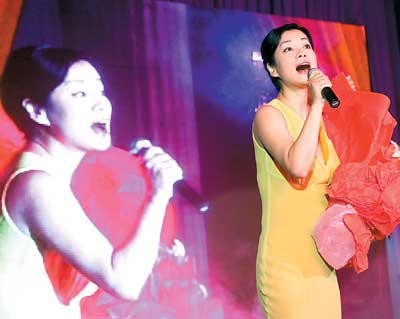 昨晚7點(diǎn)10分,記者趕到解放碑新開業(yè)的重慶國(guó)貿(mào)豪生大酒店,酒店的開業(yè)晚宴在9樓的宴會(huì)大廳內(nèi)舉行。在近10分鐘的一通開場(chǎng)桑巴熱舞過(guò)后,毛阿敏出場(chǎng)了。她用手提著淺綠色長(zhǎng)裙腰間部位,緩步走上舞臺(tái)。伴奏樂(lè)響起,毛阿敏輕抬話筒張口:“你從哪里來(lái),我的朋友,好象一只蝴蝶飛進(jìn)我的窗口……”