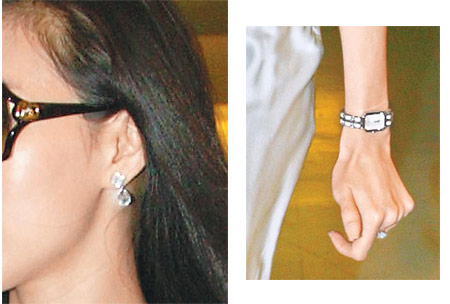 據(jù)臺(tái)灣媒體報(bào)道,曾馨瑩左手無(wú)名指戴大鉆戒,珠寶專(zhuān)家目測(cè)約10克拉,價(jià)值超過(guò)6000萬(wàn)元,而她左手腕戴的雙排鉆煉表,估計(jì)約1700萬(wàn)元,手提約19萬(wàn)200元的愛(ài)馬仕“Lindy”包。外傳她赴港是為采買(mǎi)婚禮禮品。雙排鉆煉表、鉆戒和鉆石耳環(huán),估計(jì)價(jià)值逾7700萬(wàn)元。