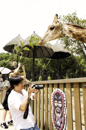 本月12日,黃磊以別克凱越旅行車的代言人和攝影發(fā)燒友的身份來到香江野生動(dòng)物園,參加由《華夏地理》雜志主辦的全球攝影大賽外拍活動(dòng)。一進(jìn)香江野生動(dòng)物園的大門,黃磊就逗起掛在樹上的兩只鷯哥,熱情地和它們打著招呼,可是鷯哥毫無反應(yīng),在數(shù)次逗弄沒有得到回應(yīng)之后,黃磊“悻悻”離去。來到長頸鹿園,黃磊顯得異常忙碌,他給長頸鹿拍起了寫真照———近景的,遠(yuǎn)景的,單個(gè)的,一對(duì)的,吃東西的,不吃東西的……為了更好地給長頸鹿取景,這位文藝帥哥還當(dāng)眾跪在地上。