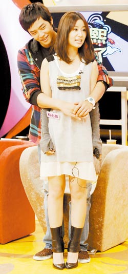 姚元浩(后)與林心如被慫恿相擁,讓兩人尷尬不已。