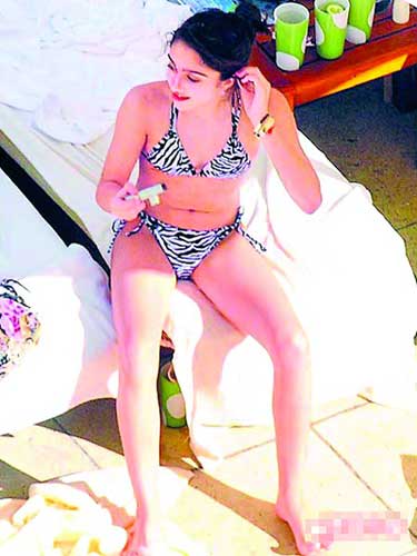 娜姐”麥當(dāng)娜赴南美巡演,女兒露迪絲跟著去玩,在飯店泳池畔日光浴。今年12歲的她剛開始發(fā)育,卻學(xué)好萊塢女星穿上比基尼秀身材。
