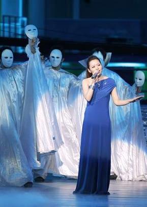 中新網(wǎng)2月20日電 昨晚,在國家游泳中心水立方舉行了一場由某網(wǎng)絡(luò)搜索引擎舉辦的頒獎(jiǎng)典禮。華誼音樂旗下藝人張靚穎出席了此次頒獎(jiǎng)典禮,同時(shí)以絕對優(yōu)勢成為當(dāng)晚音樂類獎(jiǎng)項(xiàng)的大贏家,為自己在2008年的努力交上了一份滿意答卷。當(dāng)晚,張靚穎在數(shù)十名頭戴面具的舞者簇?fù)硐卵莩艘磺懂嬓摹罚砸灰u藍(lán)色露肩禮裙登場的她,顯得氣質(zhì)清麗高雅。而宛如天籟的清亮嗓音,讓到場嘉賓為歌動(dòng)容。