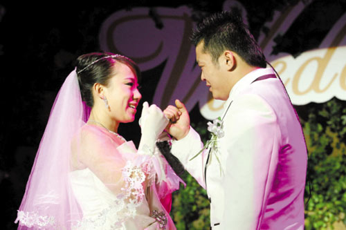 昨天上午10時18分,二人轉(zhuǎn)演員“丫蛋”毛毛與王金龍在百余親屬的見證下完成溫馨感人的婚禮。新婚夫妻哽咽著發(fā)表愛的宣言時,現(xiàn)場嘉賓被感動得潸然淚下,師傅趙本山致辭時更是真情流露,仿如嫁的是親生女兒。