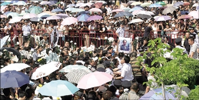 央視臺長焦利、前任臺長楊偉光,崔永元、水均益、趙忠祥、白巖松、張泉靈、邢質(zhì)斌、張宏民、李瑞英、董卿、王小丫等央視主持人均著黑衣現(xiàn)身,表情凝重。此外,蔡明、毛寧、濮存昕等演藝圈明星也來到現(xiàn)場。