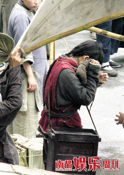 這是李宇春第一次拍電影,還碰到這么多的明星大腕、前輩高人,說沒壓力也不可能。片場(chǎng)休息,李宇春很少笑,總是坐在黃包車?yán)镆粋(gè)人孤零零地想問題。導(dǎo)演一喊開機(jī),不管有戲沒戲,她都會(huì)站到路邊仔細(xì)看。沒想到路邊也不安全,一陣邪風(fēng)吹倒一個(gè)雨棚,棚倒桿折,一下子就砸到李宇春的頭上。好容易從雨棚下掙扎出來,腦袋上不免起了個(gè)“包”,嚇壞了周圍的助理們,圍上去揉了半天,所幸并無大事。李宇春揉了揉腦袋,倒露出了一絲輕松的笑。記者 秦耀輝