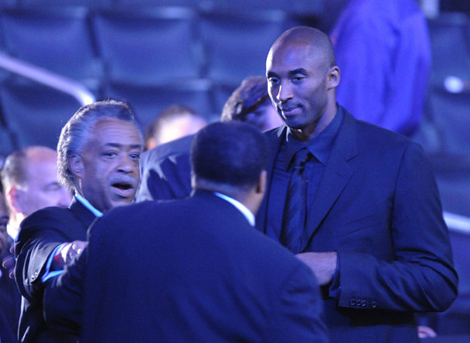 引人注目的美國籃球明星科比和魔術(shù)師約翰遜一同上臺致辭?票然貞浟撕徒芸诉d從相識到變?yōu)楹门笥训姆N種難忘經(jīng)歷和美好時光!敖芸诉d的人生是與眾不同的,在臺上和臺下的他一樣精彩。杰克遜將永遠(yuǎn)與我們同在。 ”