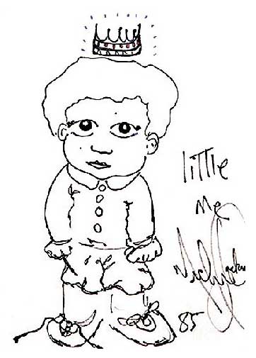 3張自畫像中,其中一張是MJ自繪兒時的樣子,圖中他身材細(xì)小頭發(fā)鬈曲,頭戴皇冠十分可愛。