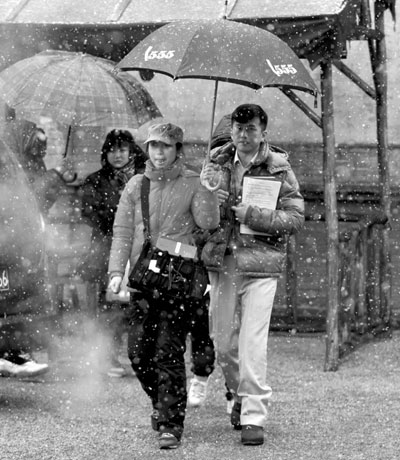 電視劇《延安愛情》悄然在沈開機,男主角鄧超昨天首現(xiàn)關(guān)東影視城片場。得知消息后,本報記者冒著棋盤山四月飛雪前往探班,親眼見證“熒屏情侶”來沈拍攝的第一場戲