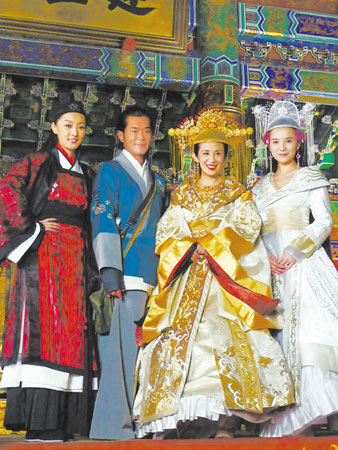 昨天,由王晶導(dǎo)演,匯集了古天樂、大S、吳君如、羅家英、林子聰、李健仁等笑星的古裝喜劇《大內(nèi)密探零零狗》對媒體開放橫店片場。頭戴黃金冠,身披黃金衣,首度以戲裝現(xiàn)身的吳君如的造型像極了《滿城盡帶黃金甲》里的鞏俐,山寨味十足。