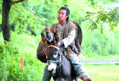 昨日記者探班的戲份是影片的開場:小沈陽飾演的凡人小鞋匠騎著毛驢準(zhǔn)備闖蕩江湖。只見小沈陽騎著毛驢一臉悠然自得狀,一邊用樹枝吊起一根胡蘿卜在毛驢的眼前搖晃。這場簡單的戲竟然拍了6條才過,全因小沈陽總是讓毛驢吃不到胡蘿卜而將其“惹惱”,生氣的毛驢每次都在同一個地點停下,任憑小沈陽怎樣吆喝,就是紋絲不動,引得小沈陽頻頻笑場。而聰明的毛驢卻在眾人不注意之時,咬住胡蘿卜便不松口。(特派記者孫琳琳)
