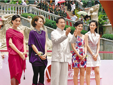 典禮雖然在早上舉行,但當(dāng)天陽(yáng)光普照、氣溫差不多高達(dá)35度,現(xiàn)場(chǎng)某些工作人員也差點(diǎn)暈倒并需人扶持,就像是在蒸桑拿。眾明星及嘉賓到場(chǎng)后坐了五分鐘后,已經(jīng)大汗淋漓,明星都需換衫及補(bǔ)妝。幸得成龍大哥憐香惜玉,細(xì)心照顧,在臺(tái)上拿出印有龍字的私人毛巾逐一在容祖兒、蔡卓妍等人面上“印”汗,還假裝要拋到觀眾席上,原來(lái)是為自己收藏,引得全場(chǎng)大笑,他們又在臺(tái)上相談甚歡,互相打趣,現(xiàn)場(chǎng)充滿歡聲笑語(yǔ),觀眾開心得合不攏嘴,爭(zhēng)相拍照,令氣氛達(dá)到高潮。