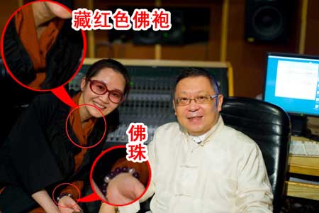 據(jù)悉,近年來,半隱退的許晴一直和文化大師李居明全心研究大唐宮廷佛樂,且經(jīng)過五年的搜集整理,通過運用過電腦軟件模擬了這些樂器的演奏,終于將失傳1200多年的唐朝宮廷佛樂修復并制作成專輯《唐密傳說》,許晴還在該專輯中一展歌喉“獻聲”?删褪窃谶@張許晴與老師李居明在錄音棚照片,引起了媒體的好奇,從照片發(fā)現(xiàn)許晴身著佛門士服手帶佛珠,因為有媒體爆出許晴實際已經(jīng)出嫁皈依佛門。