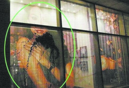 過了大概半個小時的樣子,這輛車又開到了酒店門前,車上下來了兩個用帽子遮著臉的男子,他們手里拿著墨汁,走到酒店東側(cè)一間鉑金店的門前,對著櫥窗里的章子怡代言海報,將墨汁潑了上去,然后撒腿跑上了車。之后,這輛車?yán)瘓箫w快離開了酒店,門前的記者和保安都被這一幕弄得有點(diǎn)莫名其妙。