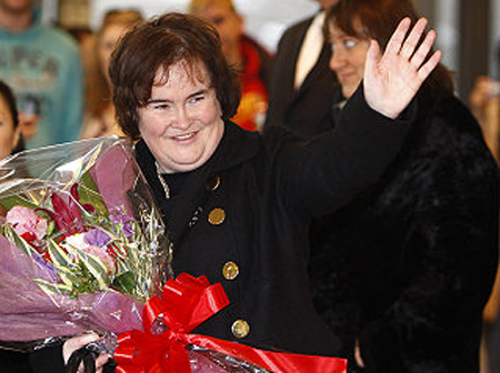 中新網(wǎng)12月30日電 英國(guó)當(dāng)紅明星蘇珊大媽(Susan Boyle)昨天(29日)抵達(dá)日本,她將參加日本放送協(xié)會(huì)(NHK)在除夕夜舉辦的紅白歌唱大賽。蘇珊大媽上午抵達(dá)東京成田機(jī)場(chǎng),現(xiàn)身出境口時(shí),滿臉笑容更狂向粉絲送飛吻,她已愈來(lái)愈有明星架勢(shì)。