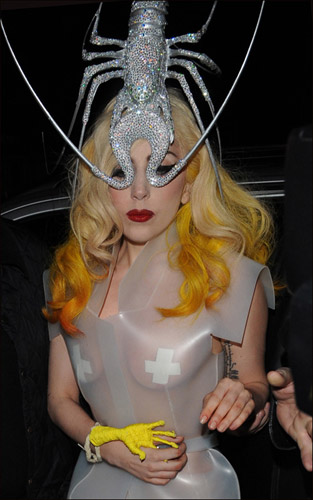 中新網(wǎng)3月2日電 “百變天后”Lady Gaga剛完成一連兩場倫敦演唱會,有傳上周五首場表演因超時45分鐘而遭場館罰款19,000美元,卻沒有阻她第二天到倫敦著名高級中菜館舉行慶功宴的興致,為了配合餐廳氣氛,她竟想到把一只銀色龍蝦放上頭當帽戴,不知同去就餐的美國搖滾歌手Bruce Springsteen是否已經(jīng)見怪不怪。