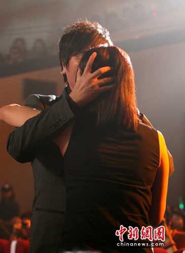 中新網(wǎng)4月12日電 4月11日晚,蒙牛酸酸乳音樂風(fēng)云榜十年盛典再回深圳盤點(diǎn)華語(yǔ)樂壇新世紀(jì)十年。本屆頒獎(jiǎng)星光熠熠,那英、陳奕迅、莫文蔚等華語(yǔ)樂壇大腕紛紛登場(chǎng)。本屆盛典評(píng)委會(huì)主席那英在活動(dòng)接近尾聲時(shí)榮獲“十年最具影響力音樂人物”大獎(jiǎng),在現(xiàn)場(chǎng)言辭激動(dòng)甚至動(dòng)情落淚,并和孫楠互相親吻。