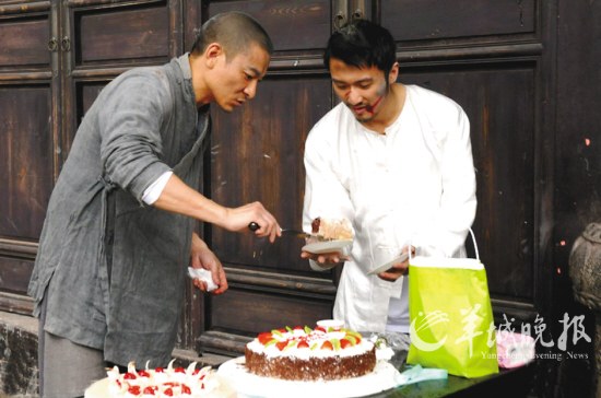 在今年的金像獎(jiǎng)上捧獎(jiǎng)后,謝霆鋒日前趕返橫店繼續(xù)開(kāi)工,而導(dǎo)演陳木勝和劇組特別在《新少林寺》的拍攝場(chǎng)地為他準(zhǔn)備了一個(gè)迷你慶祝會(huì),并送上兩個(gè)分別寫(xiě)上 “雙喜”和“臨門(mén)”的蛋糕,祝賀他贏得最佳男配角獎(jiǎng)之余,還即將第二次榮任爸爸。不過(guò),慶祝會(huì)上最令謝霆鋒雀躍的是,他的偶像劉德華專(zhuān)門(mén)為他打氣,勉勵(lì)他明年要向最佳男主角獎(jiǎng)項(xiàng)邁進(jìn)。