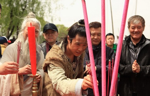 昨天上午,由博納影業(yè)、本山傳媒和延平工作室共同出品的賀歲新片《大笑江湖》在無錫影視基地正式開拍。博納影業(yè)總裁于冬和導(dǎo)演朱延平、武術(shù)指導(dǎo)程小東攜主演趙本山、小沈陽、程野出席了開機拜神儀式。隨著幾位主演正式投入拍攝,趙本山和小沈陽在片中的全新形象也正式曝光。扮演小鞋匠的小沈陽的扮相一改《三槍拍案驚奇》中的艷麗形象,變身古代帥氣熟男。據(jù)悉,小沈陽這次不只耍嘴皮子功夫,還要亮出自己二人轉(zhuǎn)底子的“真活兒”,拍攝大量的動作戲。