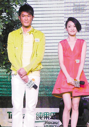 昨天在北京三里屯Village舉行的活動中,除了周、古兩人亮相外,正在成都籌備個唱的許巍也發(fā)來VIDEO,演唱了他為純果樂打造的主題曲《晨星》。為配合品牌的多彩顏色,古天樂和周迅分別以翠綠休閑裝和橙色短裙亮相,他倆一上臺就隔得遠(yuǎn)遠(yuǎn)的,在回答各自對對方的感覺時,古天樂很無厘頭地贊周迅“是個好人”,“她很年輕”,周迅則稱古仔“很幽默”。在主持人的帶領(lǐng)下,兩人回憶了各自的童年趣聞和從藝經(jīng)歷,可惜兩位代言人卻始終沒有交流。