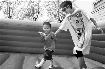 “平時(shí)真沒時(shí)間這么陪他玩,今天(2日)是他的生日,怎么也得好好陪陪他。”孫悅喘著氣說。她剛把水槍放下,小儒生又跑了過來,拉著她上氣墊床上玩。