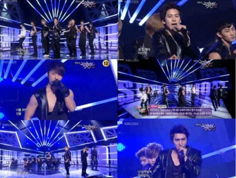 據(jù)《朝鮮日?qǐng)?bào)》消息,Super Junior在5月21日播出的韓國(guó)KBS二臺(tái)音樂(lè)節(jié)目《Music Bank》中,憑借第四張正規(guī)專(zhuān)輯主打歌《美人啊》排在了K-排行榜第一位。這距他們本月14日通過(guò)《Music Bank》復(fù)出正好是一周的時(shí)間。