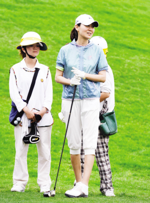 而潘蔚上場(chǎng)打球的時(shí)候,每一個(gè)招式都很專業(yè),一旁的球童告訴記者:“潘蔚是所有來的女明星中打得最好的,有時(shí)候比孫楠還打得好!碑(dāng)記者將鏡頭對(duì)準(zhǔn)潘蔚時(shí),身旁的孫楠立刻將手遮住潘蔚的臉,不愿意妻子曝光在媒體面前。