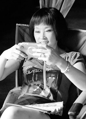 記者見到劉曉慶時(shí),她正斜坐在椅子上玩PSP,上身穿一件深藍(lán)色蓬蓬袖T恤,下身穿一條黑色短裙,腳蹬坡跟涼鞋,給人青春靚麗的感覺!澳矚g玩益智類游戲?”見劉曉慶在玩一款益智類游戲,記者問道!拔沂裁炊纪,各種類型的,就是小P里游戲不多!眲詰c邊盯著PSP的屏幕,邊答道!靶是什么?”記者不解地問道。