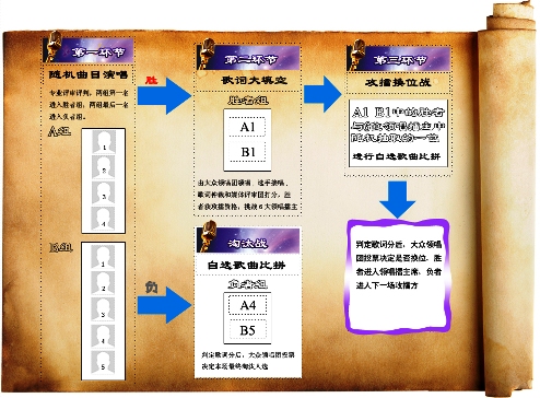 “超級領唱全國爭霸”進入第二階段的攻擂戰(zhàn),節(jié)目組對賽制進行了全新的調(diào)整。在這一階段,之前的6位晉級者將進入擂主區(qū),而9位待定者將組成攻擂方,攻擂雙方的15位領唱候選人將集體進入這一階段的攻擂戰(zhàn),也就是說,連同之前晉級的6位,舞臺上沒有一個人是安全的,都將參與攻擂戰(zhàn)的比拼。