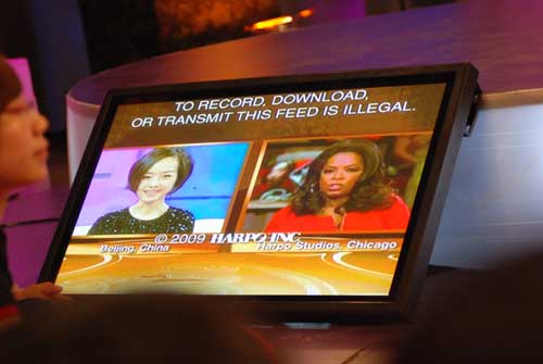 中新網(wǎng)8月27日電 8月26日晚,鳳凰衛(wèi)視主持人陳魯豫應(yīng)邀接受美國著名脫口秀主持人奧普拉•溫弗莉的采訪,并通過衛(wèi)星連線共同主持了王牌訪談欄目《奧普拉秀》。這位叱詫美國電視界24年的美國脫口秀女王是首次與亞洲同行聯(lián)袂,魯豫說:“我很高興她提出尖銳話題,讓我有機會告訴他們中國是一個怎樣的國家。”