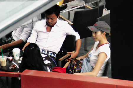 當(dāng)天蔡少芬頭戴一頂棒球帽,白T恤配長裙的裝扮令其看上去非常有活力;蛟S是由于愛情的滋潤,雖然當(dāng)天蔡少芬并沒有化妝,不過依然顯得非常漂亮。他們走進一家咖啡廳,落座后張晉侃侃而談,蔡少芬則一臉愛意地注視他。說到高興時,張晉抬起左手指指點點,蔡少芬馬上用手握住老公的胳膊,臉上滿是關(guān)心的表情,兩人看上去就像熱戀的情侶般默契十足,恩愛非常。
