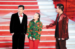 一番插科打諢后,小沈陽和毛毛的“不差錢”組合,開始與星光大道的其他選手進(jìn)行較量,看誰能最終演唱《三槍拍案驚奇》的主題歌。而這一期的嘉賓評(píng)委則是“三槍”劇組的主創(chuàng)人員。誰知前幾輪亮分時(shí),“不差錢”組合根本沒占上風(fēng)。眼看唱主題歌的事要黃了,小沈陽和毛毛終于使出最后的殺手锏,請(qǐng)出自己的“舅姥爺”,這“舅姥爺”不是別人,正是導(dǎo)演張藝謀。