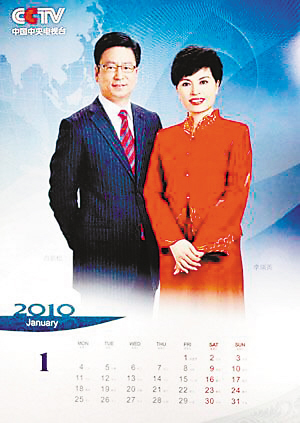 入選央視2010年掛歷的人選,基本是2007年與2008年兩年的“雙十佳”主持人,共33人,有18人是新聞?lì)愔鞒秩,白巖松和李瑞英成“一哥一姐”,2009年“封面男女”朱軍和董卿退居2月,康輝、張泉靈組合榮登5月。