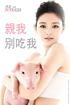 大S干脆替小豬取名“大大”,以紀(jì)念前年死去的狗,現(xiàn)在“大大”已經(jīng)成為某人家的心愛寵物。另一個廣告則是大S身著T-shirt,擺出撩人的姿勢,以“我是素食主義者”為標(biāo)語。