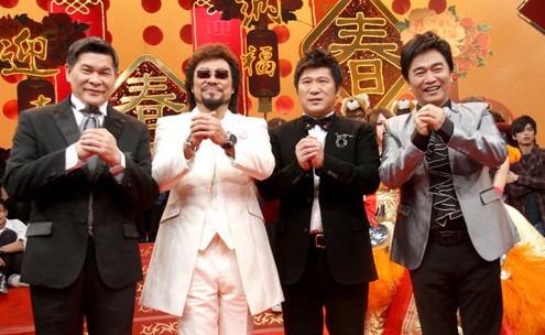 前天,4位“大腕級”的臺灣“綜藝大哥大”張菲、胡瓜、吳宗憲和澎恰恰首度同臺,主持中視除夕特別節(jié)目“虎年旺旺慶團(tuán)圓”。4人進(jìn)棚錄像,大伙笑稱是“四大天王”。張菲和胡瓜師徒2人曾在去年莫拉克風(fēng)災(zāi)后,共同主持公益慈善晚會,但4人同臺主持還是首例。